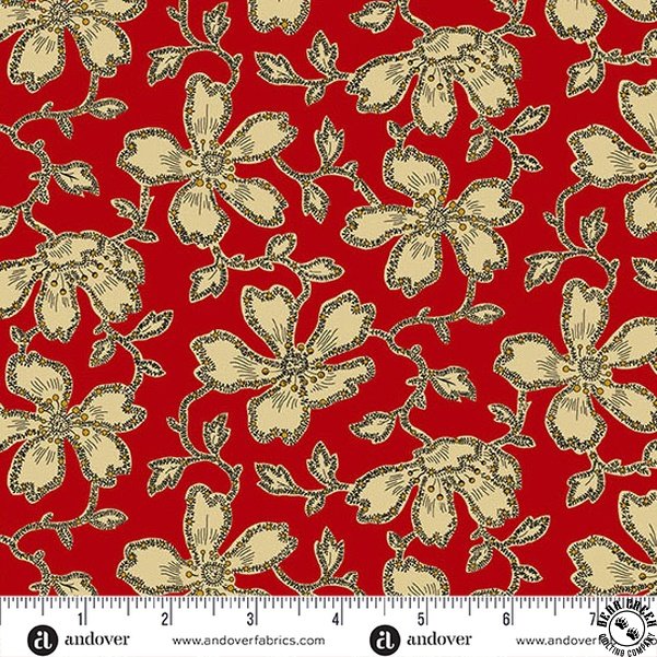 Andover Fabrics Carolina Vermicular Floral Red