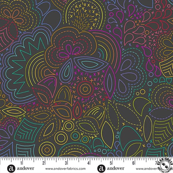 Andover Fabrics Color Wheel Rainbow Stitched Night