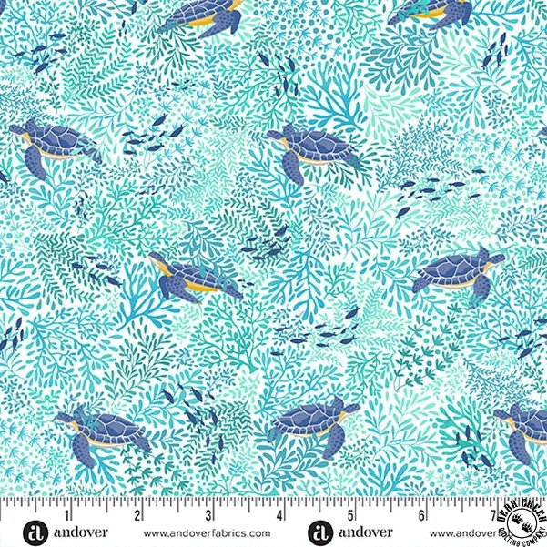 Andover Fabrics Deep Blue Sea Turtles White