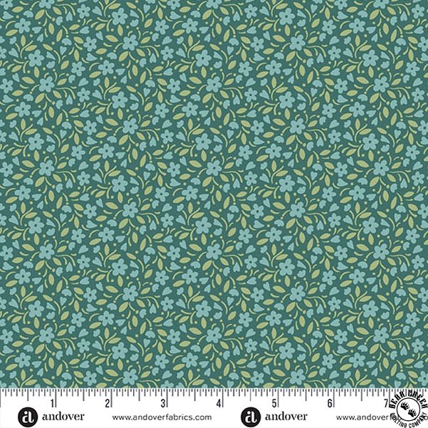 Andover Fabrics Heartland Hearts and Flowers Dark Teal