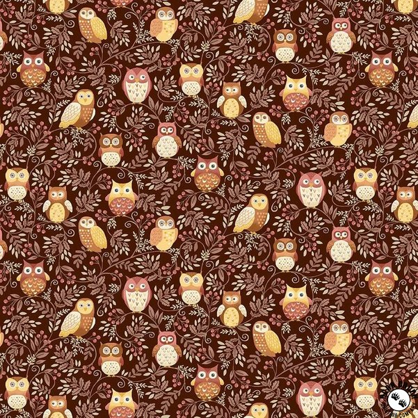 Andover Fabrics Hello Autumn Twilight Owls Brown