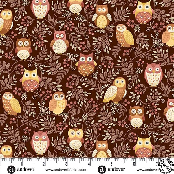 Andover Fabrics Hello Autumn Twilight Owls Brown