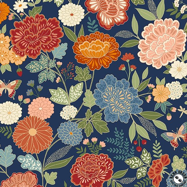 Andover Fabrics Luxe Large Flora Navy