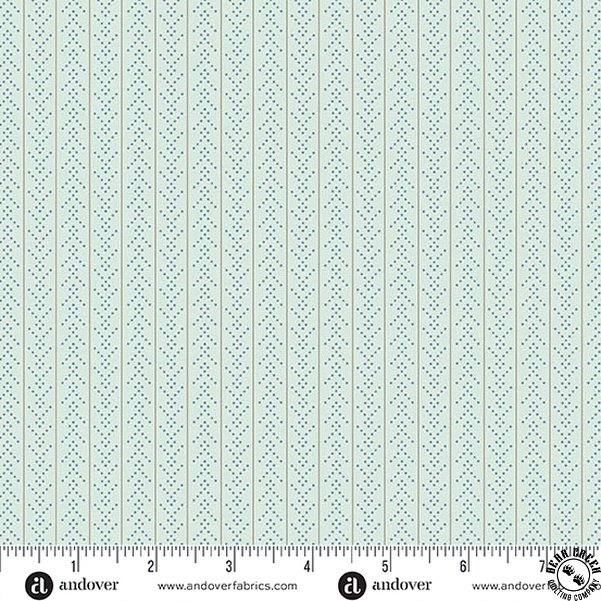 Andover Fabrics Sewing Bird Chevron Seafoam