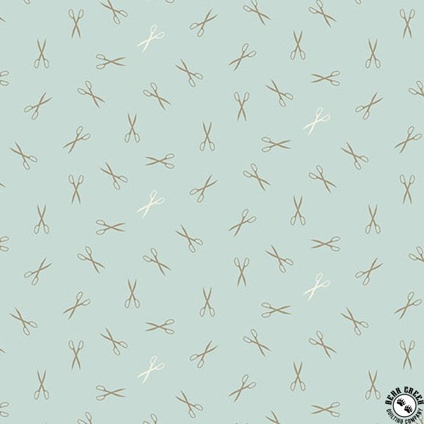 Andover Fabrics Sewing Bird Good Scissors Blue Quartz