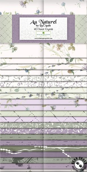 Au Naturel, has small soft watercolor flowers and coordinates in dusty shades of light to medium lavender and mossy green, combined with palest ivory. Light overall, yet sophisticated!