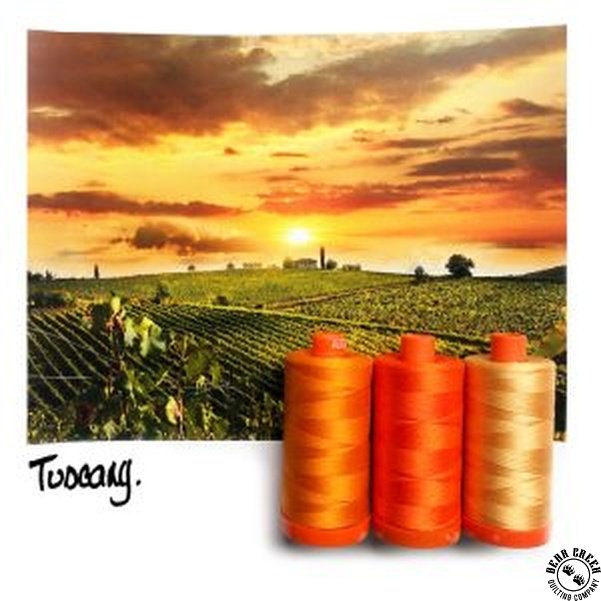 Aurifil Color Builder, a capsule of twelve curated mini-collections inspired by (and named after) Italy’s most vibrant and colorful destinations. Each collection contains three large spools of 50wt thread — a warm, a medium, and a dark — within the location’s primary color palette. From the lemon groves of Sicily to the pink sand beaches of Sardinia to the clear teal waters of Capri to the stark city grey of Milan… each collection is crafted to evoke images of our beloved Italian landscape. The colors were selected not only for their aesthetic appeal, but for their practicality in every day use. Quilter, sewist, and makers will appreciate the