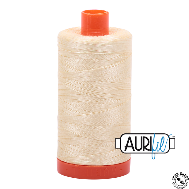 Aurifil’s 50 weight/2ply thread is our most versatile and most popular cotton thread and is wound on our iconic orange spool. It is available in 270 cotton colors and wound on the iconic orange spool. The 50 weight is strong and thin, and results in remarkably flat and crisp seams.