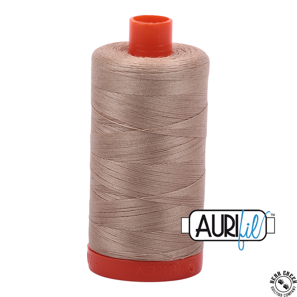Aurifil’s 50 weight/2ply thread is our most versatile and most popular cotton thread and is wound on our iconic orange spool.  It is available in 270 cotton colors and wound on the iconic orange spool.  The 50 weight is strong and thin, and results in remarkably flat and crisp seams.