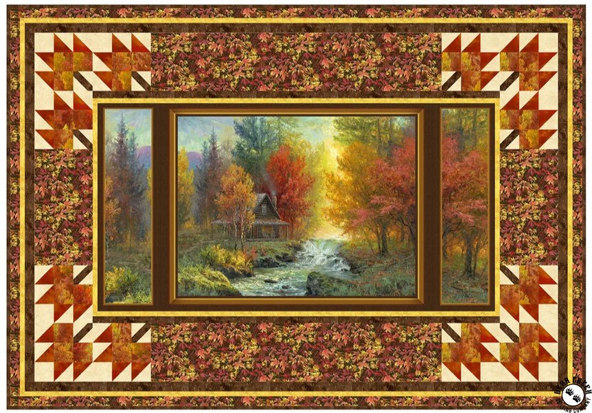 Autumn Retreat Cabin By The Stream Free Quilt Pattern courtesy of P&B Textiles