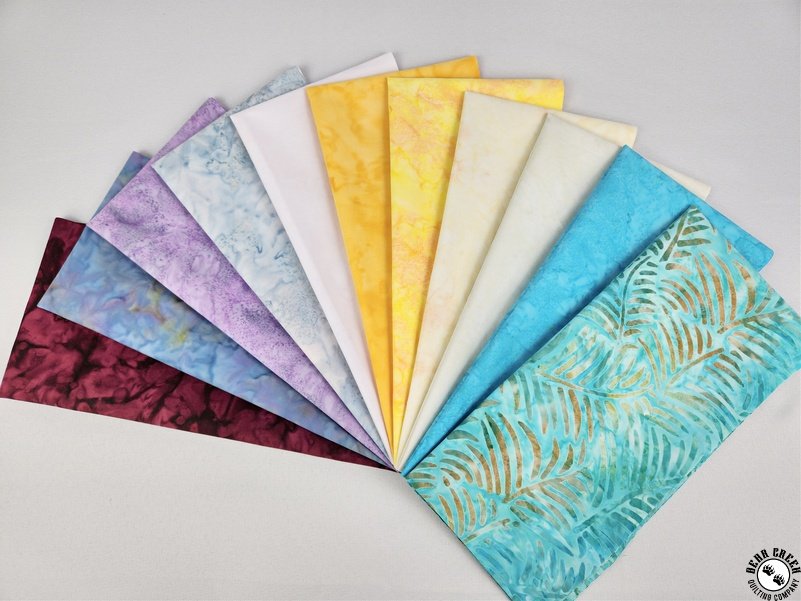 Batik #6 Extra Wide Strip Pack View Larger Image Price: SALE $24.95 4 item(s) available. Item # SP-BCQC-BATIK-#6 | Reg. $39.99 Tweet Pin It Batik #6 Extra Wide Strip PackA Bear Creek Quilting Company Exclusive! 10 - Extra Wide Fabric Strips Each strip is a generous 1/4 yard of fabric, measuring 10 1/2" x WOF (42"/43") Possible cuts you can make from each strip: 4 - 10" squares 16 - 5" squares 4 - 2 1/2" strips Bundle is equal to approximately 2 7/8 yards of fabric 100% Cotton Manufactured by a variety of our fabric manufacturers Related Products Batik #1 Extra Wide Strip Pack Item # SP-BCQC-BATIK-#1 | Reg. $39.99 SALE from $24.95 Batik #2 Extra Wide Strip Pack Item # SP-BCQC-BATIK-#2 | Reg. $39.99 SALE from $24.95 Batik #3 Extra Wide Strip Pack Item # SP-BCQC-BATIK-#3 | Reg. $39.99 SALE from $24.95 Batik #4 Extra Wide Strip Pack Item # SP-BCQC-BATIK-#4 | Reg. $39.99 SALE from $24.95 Batik #5 Extra Wide Strip Pack Item # SP-BCQC-BATIK-#5 | Reg. $39.99 SALE from $24.95
