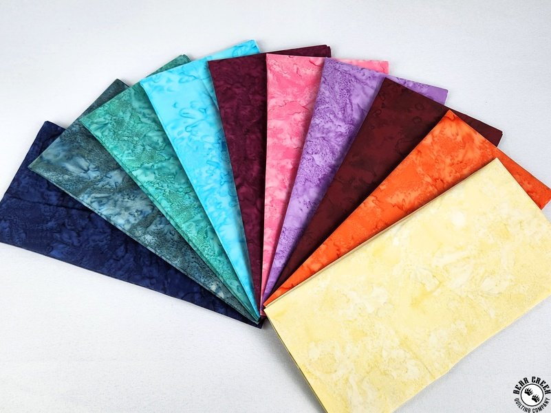 Batik Expressions #1 Extra Wide Strip Pack View Larger Image Price: SALE $21.95 13 item(s) available. Item # SP-BCQC-BATIK-EXPRESS-#1 | Reg. $39.99 Tweet Pin It Batik Expressions #1 Extra Wide Strip PackA Bear Creek Quilting Company Exclusive! 10 - Extra Wide Fabric Strips Each strip is a generous 1/4 yard of fabric, measuring 10 1/2" x WOF (42"/43") Possible cuts you can make from each strip: 4 - 10" squares 16 - 5" squares 4 - 2 1/2" strips Bundle is equal to approximately 2 7/8 yards of fabric 100% Cotton Manufactured by Riley Blake Designs Related Products Citrus Blossom Extra Wide Strip Pack Item # SP-BCQC-CITRUS-BLOSSOM | Reg. $39.99 SALE from $21.95 Peacock Parade Extra Wide Strip Pack Item # SP-BCQC-PEACOCK-PARADE | Reg. $39.99 SALE from $21.95 Riley Blake Designs Expressions Batiks Hand Dyes Adriatic Mist Item # BT21000-271 $10.39 Riley Blake Designs Expressions Batiks Hand Dyes Cotton Candy Item # BT21000-193 $10.39 Riley Blake Designs Expressions Batiks Hand Dyes Forest Green Item # BT21000-319 $10.39 Riley Blake Designs Expressions Batiks Hand Dyes Indigo Dye Item # BT21000-298 $10.39 Riley Blake Designs Expressions Batiks Hand Dyes Lavender Blue Item # BT21000-172 $10.39 Riley Blake Designs Expressions Batiks Hand Dyes Razzmic Berry Item # BT21000-174 $10.39 Riley Blake Designs Expressions Batiks Hand Dyes Smokey Teal Item # BT21000-279 $10.39 Riley Blake Designs Expressions Batiks Hand Dyes Steel Sapphire Item # BT21000-163 $10.39 Riley Blake Designs Expressions Batiks Hand Dyes Stone Blue Item # BT21000-297 $10.39 Riley Blake Designs Expressions Batiks Hand Dyes Wine Item # BT21000-199 $10.39