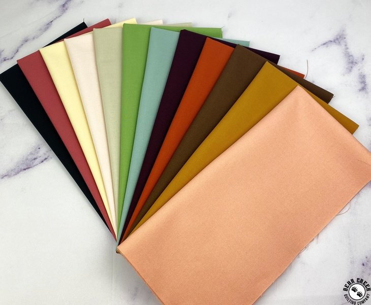 Calling all Bella Solids lovers! Currently there are over 300 colors in the Moda Bella Solids fabric collection. Bella Solids are dyed, not printed, so they do not have a right or wrong side.