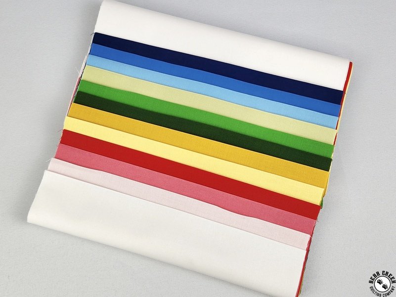 Calling all Bella Solids lovers!  Currently there are over 300 colors in the Moda Bella Solids fabric collection.  Bella Solids are dyed, not printed, so they do not have a right or wrong side.
