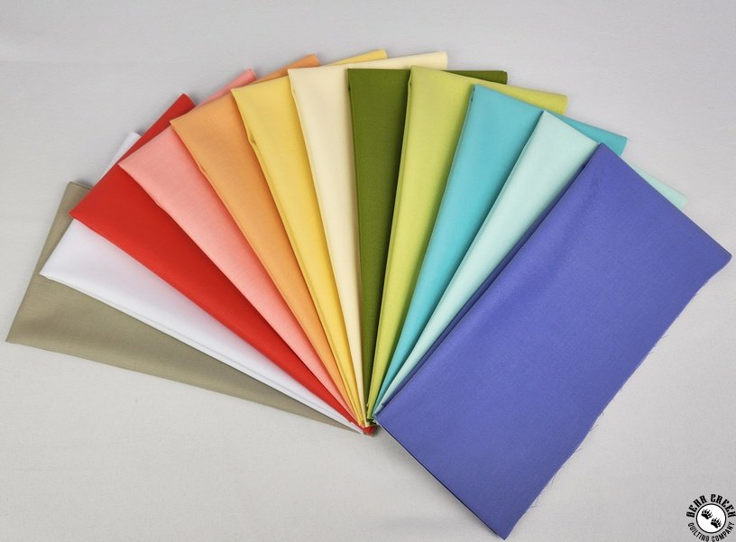 Calling all Bella Solids lovers! Currently there are over 300 colors in the Moda Bella Solids fabric collection. Bella Solids are dyed, not printed, so they do not have a right or wrong side.