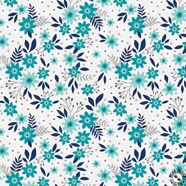 Introducing Among the Wildflowers II—a stunning fabric collection by Shelley Cavanna of Cora's Quilts, inspired by meadows bursting with vibrant spring blooms.  This collection celebrates the simple joy of slow stitching and handwork, and the beauty found among wildflowers, where creativity flourishes with every stitch.  Bold, life-sized florals and a vivid, lakeside-inspired color palette are perfectly balanced with delicate floral prints, hand-stitched textures, and soft shades of aqua, fern green, deep teals, and indigos.  With designs that appeal to both modern and contemporary quilters, your projects will thrive in the wild, enchanting beauty of this collection.
