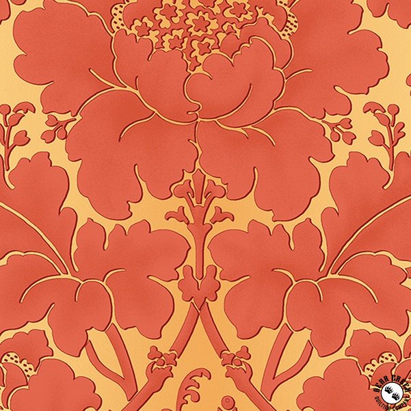 Benartex Flower Festival Garden Damask Flame/Gold