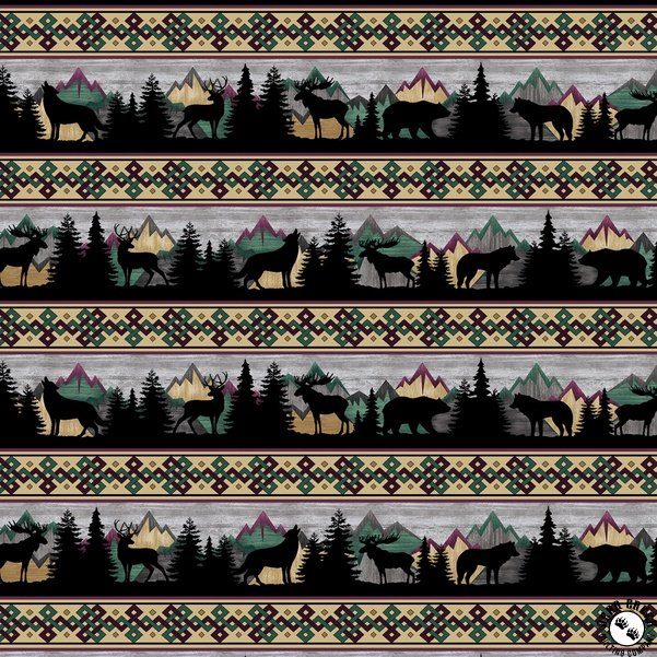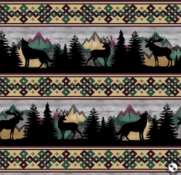 Capture the spirit of the mountains with Into the Wild—the latest fabric adventure from Ann Lauer of Grizzly Gulch Gallery.  Majestic peaks provide a breathtaking backdrop for striking animal portraits that reflect the essence of the deep forest.  This collection goes beyond traditional wildlife design, blending realistic mountain animals with artistic insets of forests and peaks.  Coordinating geometric prints add a modern flair, making Into the Wild perfect for cozy cabins, rustic home décor, or anyone who loves the great outdoors.