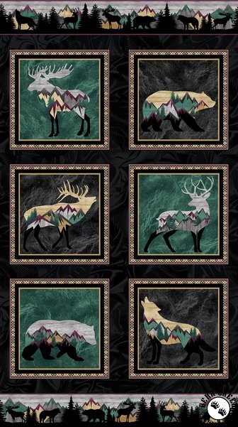 Capture the spirit of the mountains with Into the Wild—the latest fabric adventure from Ann Lauer of Grizzly Gulch Gallery.  Majestic peaks provide a breathtaking backdrop for striking animal portraits that reflect the essence of the deep forest.  This collection goes beyond traditional wildlife design, blending realistic mountain animals with artistic insets of forests and peaks.  Coordinating geometric prints add a modern flair, making Into the Wild perfect for cozy cabins, rustic home décor, or anyone who loves the great outdoors.