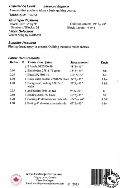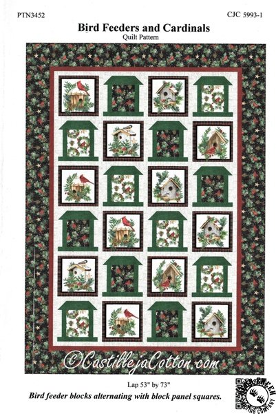 Bird Feeders and Cardinals Quilt Pattern View Larger Image Price: SALE $8.39 5 item(s) available. Item # PTN-3452/CJC5993-1 | Reg. $11.99 Tweet Pin It Bird Feeders and Cardinals Quilt PatternFeaturing the Winter Song fabric collection by Northcott. Pattern and instructions; fabric not included Finished size is 53 inches by 73 inches Designed by Diane McGregor Published by Castilleja Cotton Copyright 2025
