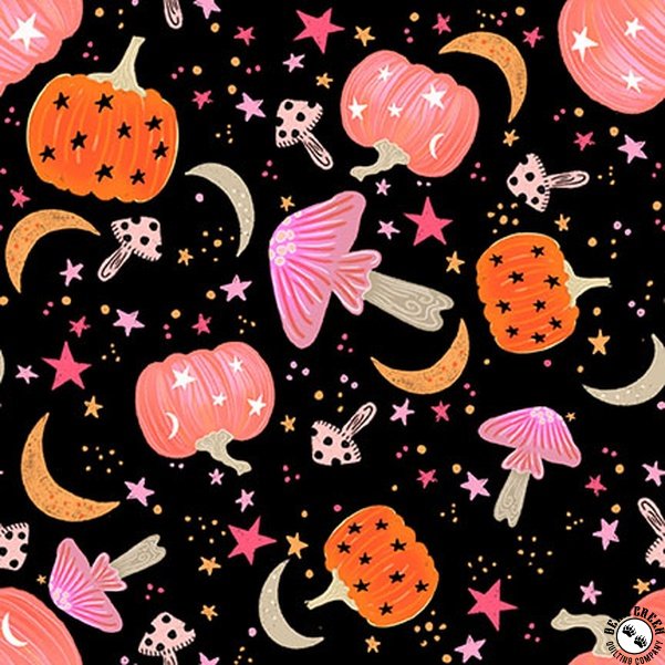 Blank Quilting Ghostly Greetings Pumpkins & Mushrooms Black