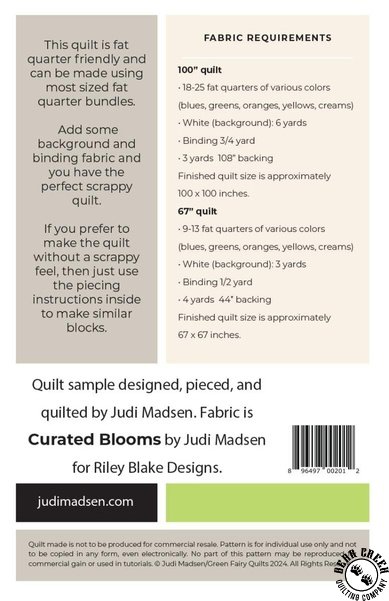 Blooms Quilt Pattern View Larger Image Price: SALE $8.39 2 item(s) available. Item # PTN-116 | Reg. $11.99 Tweet Pin It Blooms Quilt PatternFeaturing the Curated Blooms fabric collection by Riley Blake Designs. Pattern and instructions; fabric not included Finished quilt measures: 67 inches by 67 inches 100 inches by 100 inches Designed by Judi Madsen Produced by Judi Madsen Designs Copyright 2024 Related Products Curated Quilt Pattern Item # PTN-118 | Reg. $11.99 SALE from $8.39 Mama Gypsy Quilt Pattern Item # PTN-111 | Reg. $11.99 SALE from $8.39 Off To Market Quilt Pattern Item # PTN-120 | Reg. $11.99 SALE from $8.39