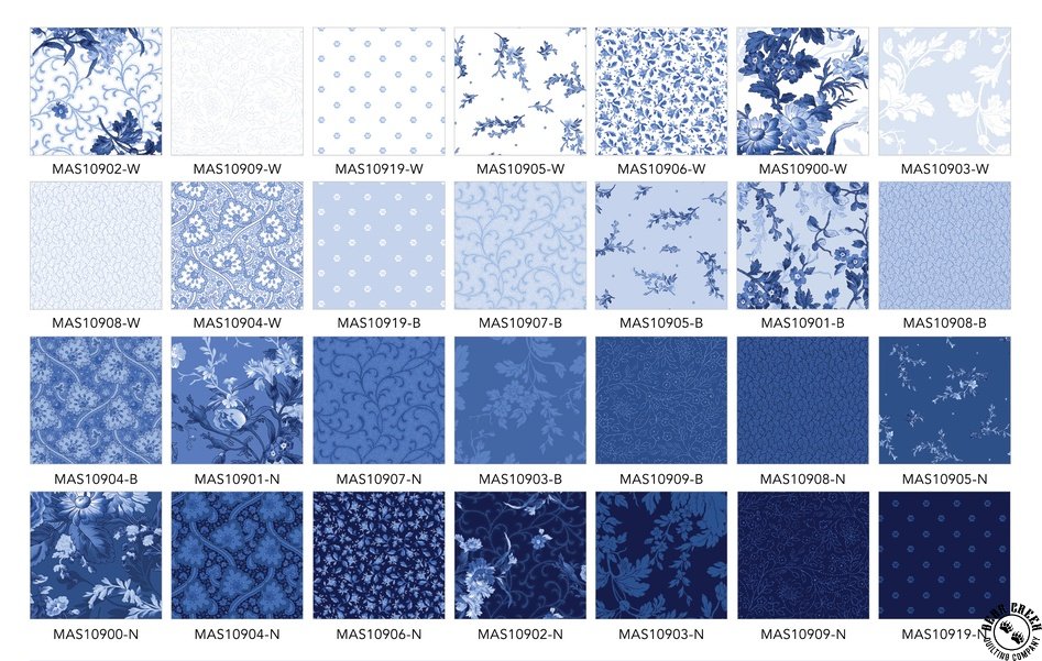 Blue Belle  reimagines the classic floral through a contemporary lens, orchestrating a symphony of blues and blossoms.  Inspired by the enduring beauty of traditional blue textiles, it captures the elegance of painterly blooms and graceful scrolls, evoking a sense of heirloom artistry.  The palette—rich cobalt, radiant royal, soft sky, luminous white, and deep navy—unfolds into a floral narrative that feels at once timeless and refreshingly modern.