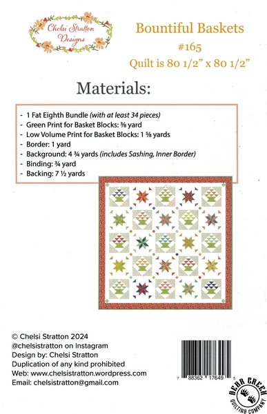 Bountiful Baskets Quilt Pattern View Larger Image Price: SALE $8.39 6 item(s) available. Item # PTN-CSD-165 | Reg. $11.99 Tweet Pin It Anthem Quilt PatternFeaturing the Raspberry Summer fabric collection by Moda. Pattern and instructions; fabric not included Finished size is 80 1/2 inches by 80 1/2 inches Authored by Chelsi Stratton and Published by Chelsi Stratton Designs Copyright 2025 Related Products Anthem Quilt Pattern Item # PTN-CSD-164 | Reg. $11.99 SALE from $8.39 Star Bright 2 Quilt Pattern Item # PTN-QLD-256 | Reg. $11.99 SALE from $8.39 Star Crossed Remix Quilt Pattern Item # PTN-CSD-168 | Reg. $11.99 SALE from $8.39 Sweet Adventure Quilt Pattern Item # PTN-CSD-166 | Reg. $11.99 SALE from $8.39