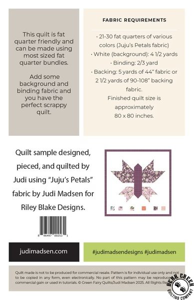 Butterfly Dance Quilt Pattern View Larger Image Price: SALE $8.39 11 item(s) available. Item # PTN-No.122 | Reg. $11.99 Pin It Butterfly Dance Quilt PatternFeaturing the Juju's Petals fabric collection Riley Blake Designs. Pattern and instructions; fabric not included Finished size is 80 inches by 80 inches Designed by Judi Madsen Published by Judi Madsen Designs Copyright 2025 Related Products Bohemian Quilt Pattern Item # PTN-No.101 | Reg. $11.99 SALE from $8.39 Butterfly Kisses Quilt Pattern Item # PTN-No.125 | Reg. $11.99 SALE from $8.39 Juju's Petals 10" Squares by Riley Blake Designs Item # 10-16610-42 | Reg. $49.99 SALE from $34.99 Juju's Petals Quilt Pattern Item # PTN-No.123 | Reg. $11.99 SALE from $8.39 Juju's Petals Strip Roll by Riley Blake Designs Item # RP-16610-40 | Reg. $49.99 SALE from $34.99 Juju's Tiles Quilt Pattern Item # PTN-No.121 | Reg. $11.99 SALE from $8.39 Mama Juju Quilt Pattern Item # PTN-No.124 | Reg. $11.99 SALE from $8.39 Riley Blake Designs Juju's Petals Calico Cream Item # C16613-CREAM | Reg. $11.99 SALE from $8.39 Riley Blake Designs Juju's Petals Calico Orange Item # C16613-ORANGE | Reg. $11.99 SALE from $8.39 Riley Blake Designs Juju's Petals Calico Teal Item # C16613-TEAL | Reg. $11.99 SALE from $8.39 Riley Blake Designs Juju's Petals Dance Lilac Item # C16611-LILAC | Reg. $11.99 SALE from $8.39 Riley Blake Designs Juju's Petals Dots Cream Item # C16616-CREAM | Reg. $11.99 SALE from $8.39 Riley Blake Designs Juju's Petals Dots Green Item # C16616-GREEN | Reg. $11.99 SALE from $8.39 Riley Blake Designs Juju's Petals Dots Pink Item # C16616-PINK | Reg. $11.99 SALE from $8.39 Riley Blake Designs Juju's Petals Dots Yellow Item # C16616-YELLOW | Reg. $11.99 SALE from $8.39 Riley Blake Designs Juju's Petals Mosaic Lilac Item # C16614-LILAC | Reg. $11.99 SALE from $8.39 Riley Blake Designs Juju's Petals Mosaic Orange Item # C16614-ORANGE | Reg. $11.99 SALE from $8.39 Riley Blake Designs Juju's Petals Mosaic Teal Item # C16614-TEAL | Reg. $11.99 SALE from $8.39 Riley Blake Designs Juju's Petals Stripes Orange Item # C16615-ORANGE | Reg. $11.99 SALE from $8.39 Riley Blake Designs Juju's Petals Stripes Purple Item # C16615-PURPLE | Reg. $11.99 SALE from $8.39 Riley Blake Designs Juju's Petals Stripes Yellow Item # C16615-YELLOW | Reg. $11.99 SALE from $8.39