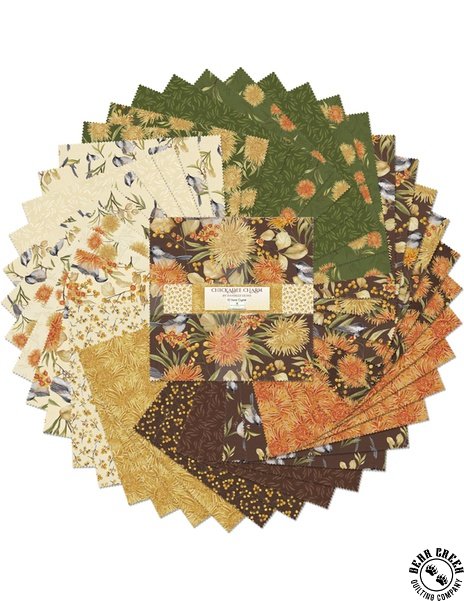 Chickadee Charm  captures the essence of natural beauty with an earthy elegance.  This warm, inviting collection features a stunning mix of florals, birds, and botanicals in rich tones of yellow, orange, brown, and green.  Highlights include a large scenic panel and a coordinating repeating stripe, complemented by packed florals, graceful chickadees, scattered chrysanthemums, delicate berry tosses, and tonal petal prints — perfect for creating projects that celebrate the serenity of nature.