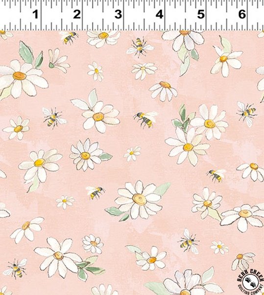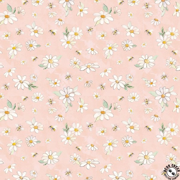 Clothworks Daisy Field Daisies and Bees Light Coral