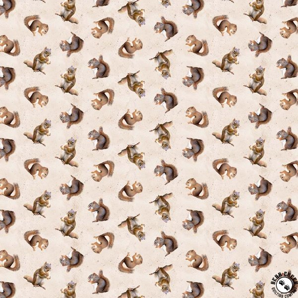 Clothworks The Secret Life of Squirrels III Squirrels Light Khaki