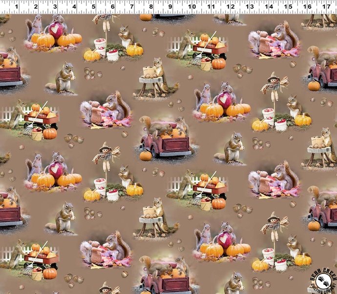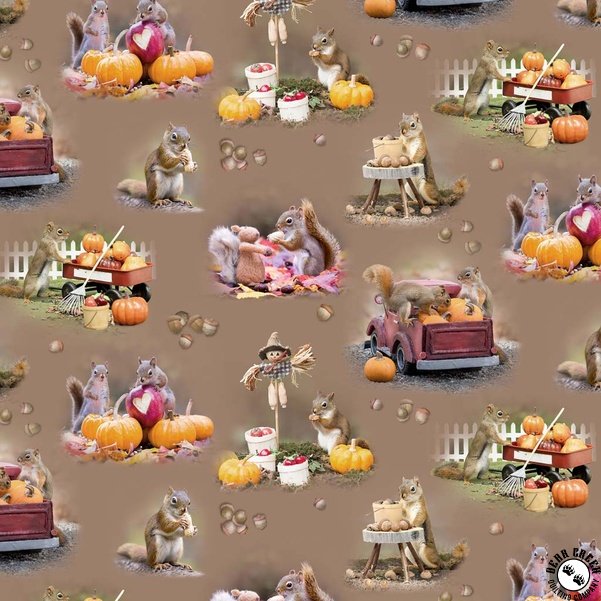 Yes—the squirrels are back, and yes—they’re real!  Each one is a live squirrel, charmingly photographed by Nancy Rose herself.  Join them in a delightful fall frolic featuring a large panel, double-border print, storybook panel, and more!