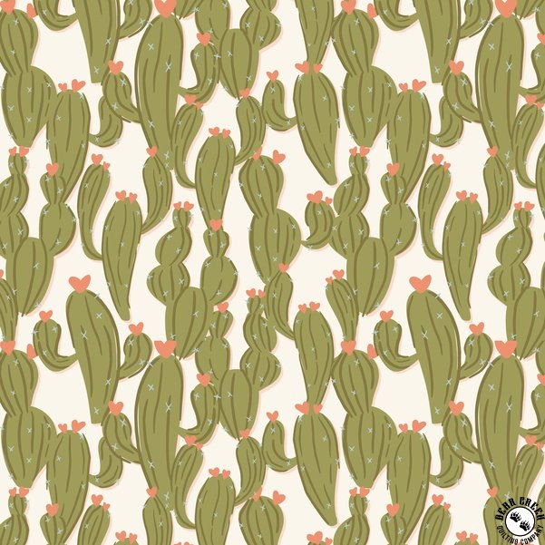 Cloud9 Fabrics Petals and Pony Luck Cactus Kisses Green