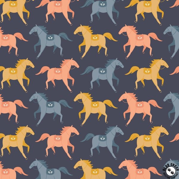 Cloud9 Fabrics Petals and Pony Luck Canter Navy
