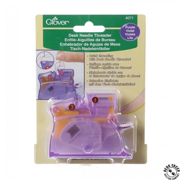 is an automatic needle threader!  No more fighting with threading a needle.  Simply drop your needle, rest your thread in the slot and press the button.  You needle is threaded!  Ideal for difficult to thread floss, metallics and small needle eyes.  This tool is a must for every sewer and quilter.  The threader also has a built in cutter.