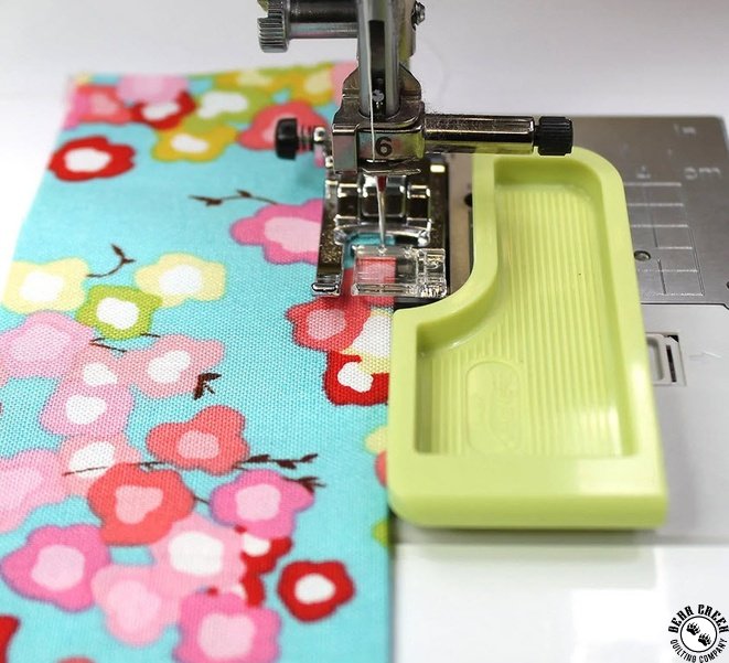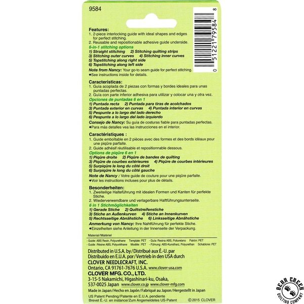 Your go-to seam guide for perfect stitching! Two piece interlocking guide with ideal shapes and edges for perfect stitching. Reusable and repositionable adhesvie guide underside.