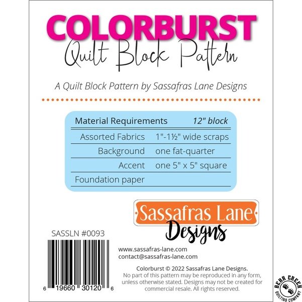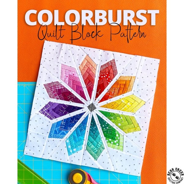 Color Burst Quilt Block PatternFoundation Paper Piecing! This beautiful paper-pieced block pattern includes full-size foundations and foundation paper-piecing instructions. Dig into your scrap bins and stash to make the Colorburst star pattern! We love gradating color through the foundations and creating color wheels.