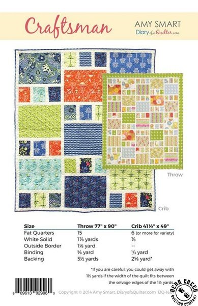 Craftsman Quilt Pattern View Larger Image Price: SALE $8.39 85 item(s) available. Item # PTN-DQ1601 | Reg. $11.99 Tweet Pin It Craftsman Quilt Pattern Pattern and instructions; fabric not included Finished quilt measures: Crib = 41 1/2 inches by 49 inches Throw = 77 inches by 90 inches Designed by Amy Smart Published by Diary of a Quilter Copyright 2023