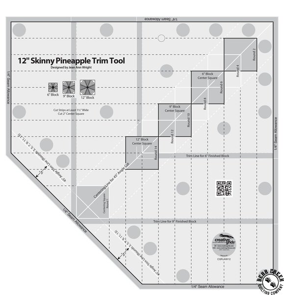 Creative Grids Skinny Pineapple 12 Inch Trim Tool instructions can be found here.