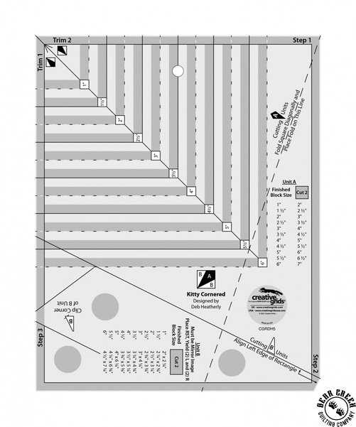 Creative Grids Kitty Cornered Ruler instructions can be found here.