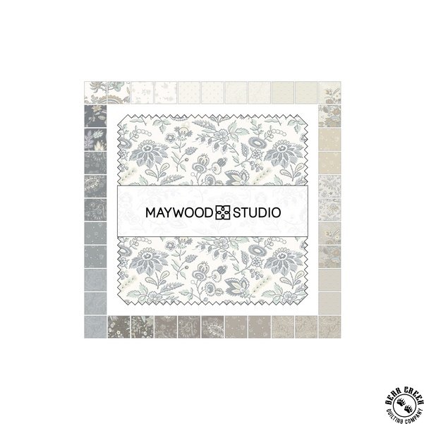 Daybreak  features intricate paisley patterns in a serene blend of soft cool grays and warm taupes, creating a delicate balance of warm and cool neutrals. The designs evoke the peaceful feeling of spending a quiet day in a shady spot with soft breezes and a good booklight, airy, and tranquil. The intricate patterns, combined with earthy soothing colors, bring a gentle elegance to any sewing project, whether for a lap quilt to relax under or a calming home accessory.
