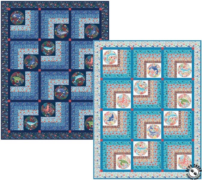 Deep Blue Sea Shark Bite Free Quilt Pattern courtesy of Andover Fabrics