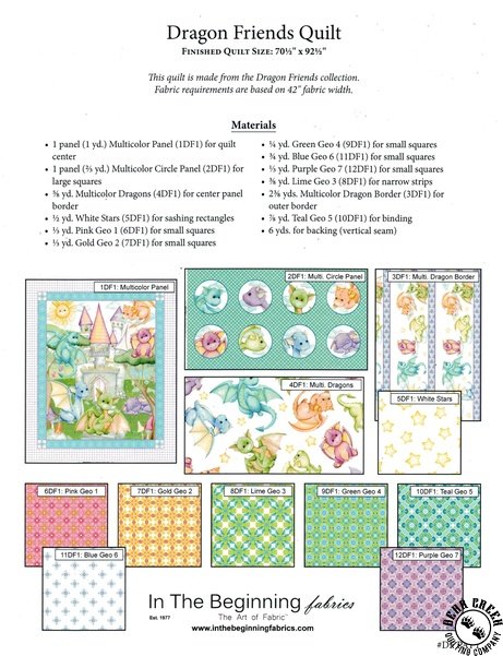 Dragon Friends Quilt Pattern View Larger Image Price: $7.99 5 item(s) available. Item # PTN-DF-PATT Tweet Pin It Dragon Friends Quilt PatternFeaturing the Dragon Friends fabric collection by In The Beginning Fabrics. Pattern and instructions; fabric not included Finished size is 70 1/2 inches by 92 1/2 inches Designed by Jason Yenter Published by In the Beginning Fabrics Copyright 2025 Related Products In The Beginning Fabrics Dragon Friends Border Stripe Multi Item # 3DF-1 $12.99 In The Beginning Fabrics Dragon Friends Circle Panel Item # 2DF-1 $8.99 In The Beginning Fabrics Dragon Friends Dragons Multi Item # 4DF-1 $12.99 In The Beginning Fabrics Dragon Friends Geo Blue Item # 11DF-1 $12.99 In The Beginning Fabrics Dragon Friends Geo Gold Item # 7DF-1 $12.99 In The Beginning Fabrics Dragon Friends Geo Green Item # 9DF-1 $12.99 In The Beginning Fabrics Dragon Friends Geo Lime Item # 8DF-1 $12.99 In The Beginning Fabrics Dragon Friends Geo Pink Item # 6DF-1 $12.99 In The Beginning Fabrics Dragon Friends Geo Purple Item # 12DF-1 $12.99 In The Beginning Fabrics Dragon Friends Geo Teal Item # 10DF-1 $12.99 In The Beginning Fabrics Dragon Friends Large Panel Item # 1DF-1 $12.99 In The Beginning Fabrics Dragon Friends Stars White Item # 5DF-1 $12.99