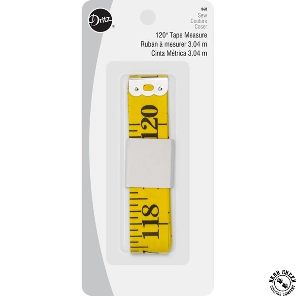 Dritz 120" Tape Measure View Larger Image Price: $4.99 14 item(s) available. Item # DRITZ-840 Tweet Pin It Tape Measure by Dritz 1 - 3/4 inch x 120 inch, non-stretch vinyl tape measure (metric and inches on reverse sides) Yellow for easy reading Made from Fiberglass for flexibility Manufactured by Prym-Dritz Corporation Related Products Dritz 60" Extra Wide Tape Measure Item # DRITZ-839 $3.99 Dritz 60" Tape Measure Item # DRITZ-844 $2.49 Dritz Bamboo Stiletto Item # DRITZ-3168 $11.99 Dritz Extra Long Pearlized Pins Item # DRITZ-64 $6.99 Dritz Glass Head Pins - Extra Fine Item # DRITZ-61 $10.99 Dritz Hummingbird Needle Threader Item # DRITZ-270 $4.99 Dritz Measuring Gauge Item # DRITZ-3100 $3.99 Dritz Paper Piecing Shape 1 1/2" Hexagon Item # DRITZ-3231 $9.99 Dritz Paper Piecing Shape 2" Hexagon Item # DRITZ-3232 $9.99 Dritz Pearlized Heart Pins - WHITE Item # DRITZ-139 $4.99 Dritz Point Turner - PINK Item # DRITZ-60108 $4.99 Dritz Quilter's Pins Item # DRITZ-1310 $13.99 Dritz Tomato Pin Cushion with Emery Sharpener - EXTRA LARGE BLACK Item # DRITZ-00697-221 $15.99 Dritz Tomato Pin Cushion with Emery Sharpener - RED Item # DRITZ-732-RED $2.99