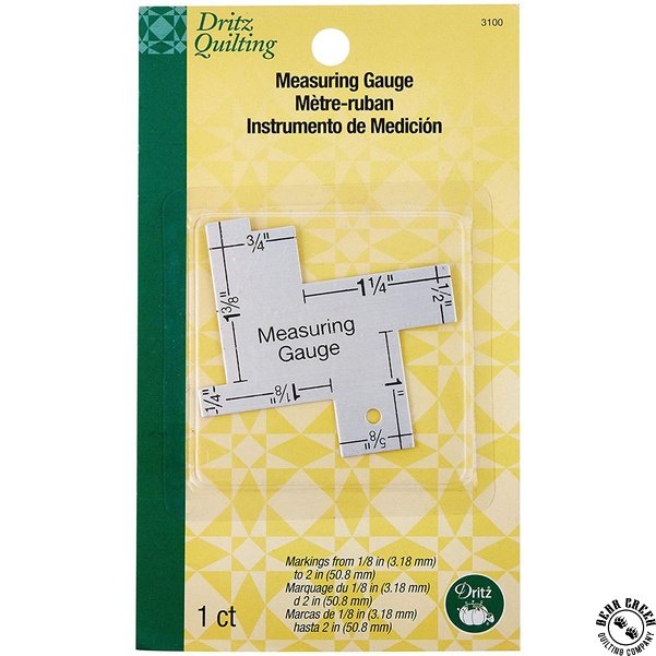 Take exact measurements of small items while sewing or quilting with the Dritz Measuring Gauge. This handy aluminum gauge indicates 14 functional measurements and features clear black markings from 1/8 to 2 inches on both the sides. Use it to mark precise locations of hems, buttons, appliques and other dainty embellishments on fabrics or craft projects. The gauge is compact in size and can easily slip into your handbag or sewing kit.