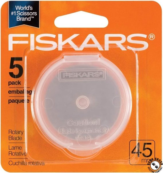 Perfect for crisp, controlled cuts on a wide variety of materials. High quality stainless steel blades for use with Fiskars 45mm Rotary Cutters and Fiskars Rotary Paper Trimmers. Package contains 5 blades. Blades come in a multiple blade case for convenient storage and prolonged blade life.