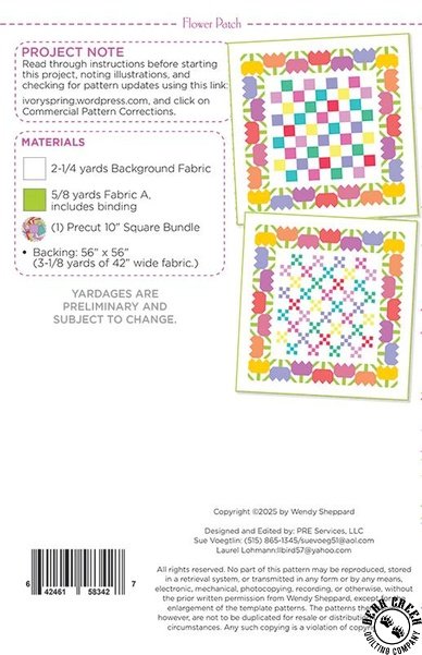 Flower Patch Quilt Pattern View Larger Image Price: $12.99 12 item(s) available. Item # PTN-WS106 Pin It Flower Patch Quilt PatternFeaturing the Chelsea Garden fabric collection by Moda Pattern and instructions; fabric not included Finished size is 48 inches by 48 inches Designed by Wendy Sheppard Published by Wendy Copyright 2026 Related Products Chelsea Garden Charm Pack by Moda Item # 33850PP $12.99 Chelsea Garden Fat Quarter Bundle by Moda Item # 33850AB $129.99 Chelsea Garden Jelly Roll by Moda Item # 33850JR $49.99 Chelsea Garden Layer Cake by Moda Item # 33850LC $49.99 Moda Chelsea Garden Ambling Vine Midnight Item # 33857-19 $0.00 Moda Chelsea Garden Ambling Vine Porcelain Item # 33857-11 $0.00 Moda Chelsea Garden Ambling Vine Porcelain/Peacock Item # 33857-24 $0.00 Moda Chelsea Garden Bohemian Flare Midnight Item # 33854-19 $0.00 Moda Chelsea Garden Bohemian Flare Midnight/Drizzle Item # 33854-29 $0.00 Moda Chelsea Garden Bohemian Flare Porcelain Item # 33854-11 $0.00 Moda Chelsea Garden Bohemian Flare Porcelain/Peacock Item # 33854-24 $0.00 Moda Chelsea Garden Cheeky Posy Midnight Item # 33856-19 $0.00 Moda Chelsea Garden Cheeky Posy Plum Item # 33856-17 $0.00 Moda Chelsea Garden Cheeky Posy Porcelain Item # 33856-11 $0.00 Moda Chelsea Garden Flower Show Midnight Item # 33850-19 $0.00 Moda Chelsea Garden Flower Show Plum Item # 33850-17 $0.00 Moda Chelsea Garden Flower Show Porcelain Item # 33850-11 $0.00 Moda Chelsea Garden Galivanting Garden Midnight Item # 33853-19 $0.00 Moda Chelsea Garden Galivanting Garden Mulberry Item # 33853-16 $0.00 Moda Chelsea Garden Galivanting Garden Porcelain Item # 33853-11 $0.00 Moda Chelsea Garden Party Goldenrod Item # 33852-12 $0.00 Moda Chelsea Garden Party Midnight Item # 33852-19 $0.00 Moda Chelsea Garden Party Mulberry Item # 33852-16 $0.00 Moda Chelsea Garden Party Peacock Item # 33852-14 $0.00 Moda Chelsea Garden Piccadilly Drizzle Item # 33855-18 $0.00 Moda Chelsea Garden Piccadilly Goldenrod Item # 33855-12 $0.00 Moda Chelsea Garden Piccadilly Porcelain Item # 33855-11 $0.00 Moda Chelsea Garden Posh Paisley Midnight Item # 33851-19 $0.00 Moda Chelsea Garden Posh Paisley Plum Item # 33851-17 $0.00 Moda Chelsea Garden Posh Paisley Porcelain Item # 33851-11 $0.00 Skybound Quilt Pattern Item # PTN-CKQ-2402 $12.99