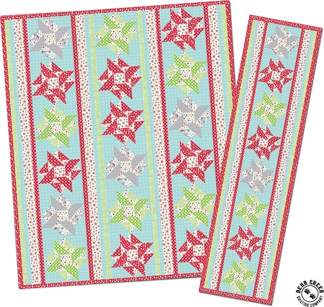 The free pattern is designed for fabric collections to help give you inspirational ideas on how to use that collection in a quilt, tote bag, table runners and more.