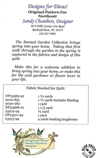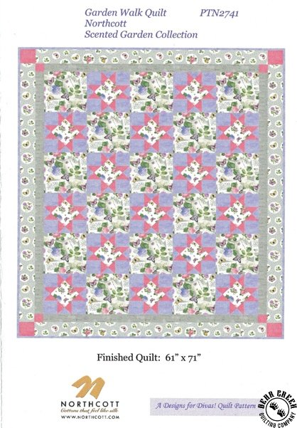Garden Walk Quilt Pattern View Larger Image Price: SALE $8.39 2 item(s) available. Item # PTN-2741 | Reg. $11.99 Pin It Garden Walk Quilt PatternFeaturing the Scented Garden fabric collection by Northcott. Pattern and instructions; fabric not included Finished quilt measures 61 inches by 71 inches Designed by Sandy Chambers Published by Designs for Divas Copyright 2021